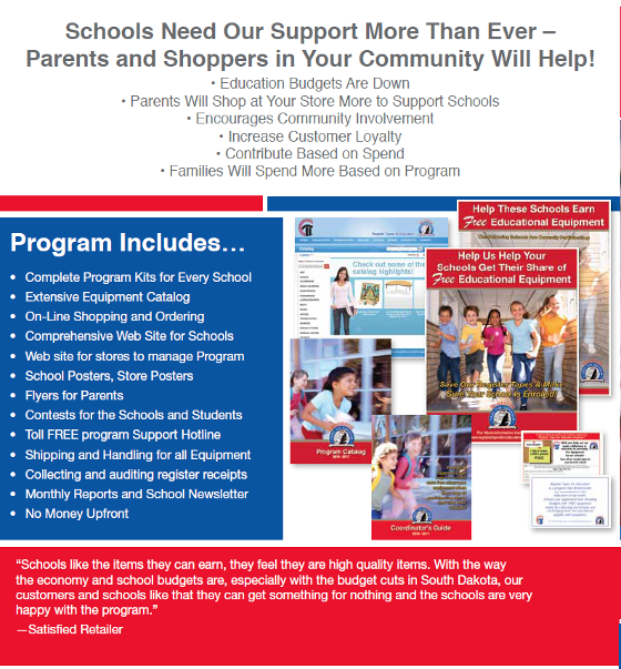 One of our premium cause marketing products is the Education program. The program is completely customizeable for your supermarket: Program name, website, who can and how they can participate - it's all up to you!